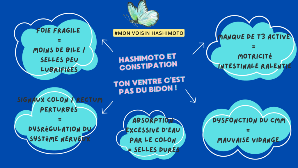 Chez Hashimoto, la constipation n’est pas qu’une gêne passagère : elle traduit un véritable ralentissement du système digestif, directement lié à la thyroïde.